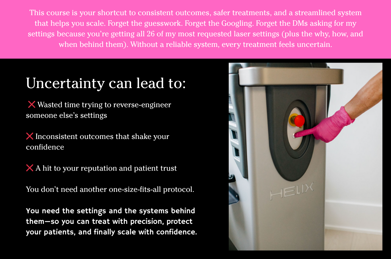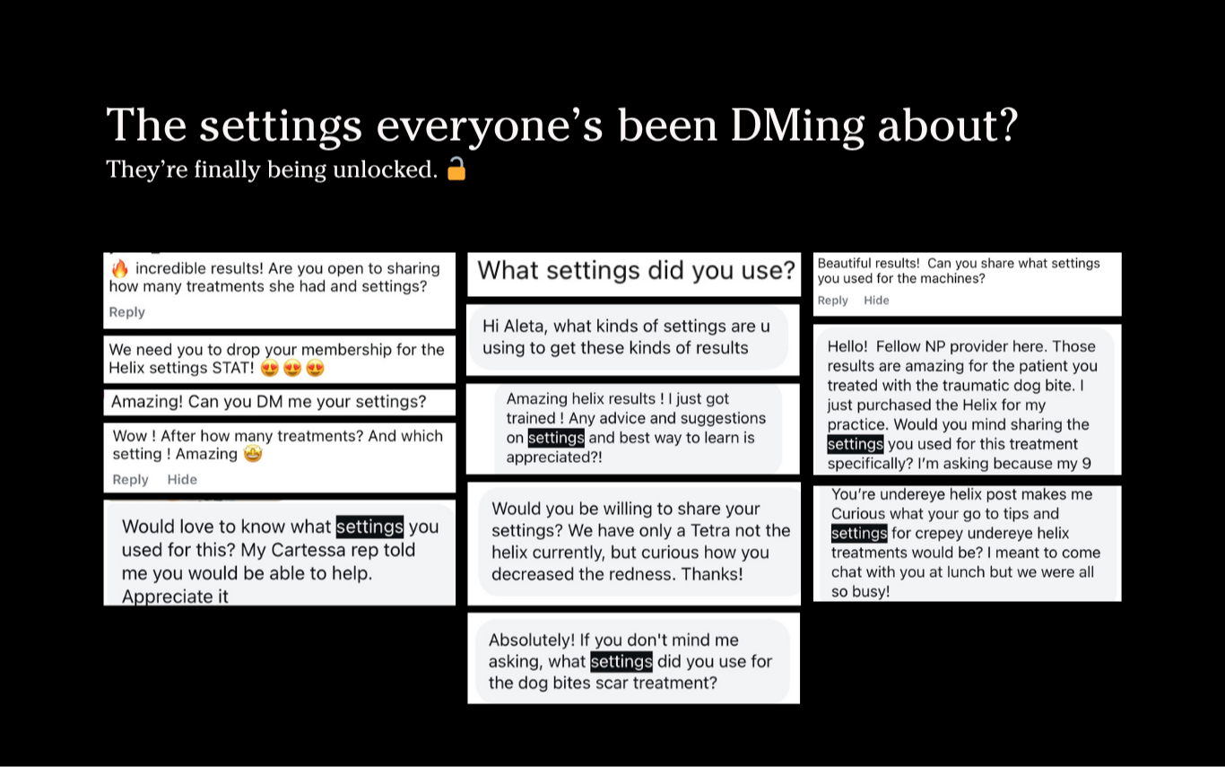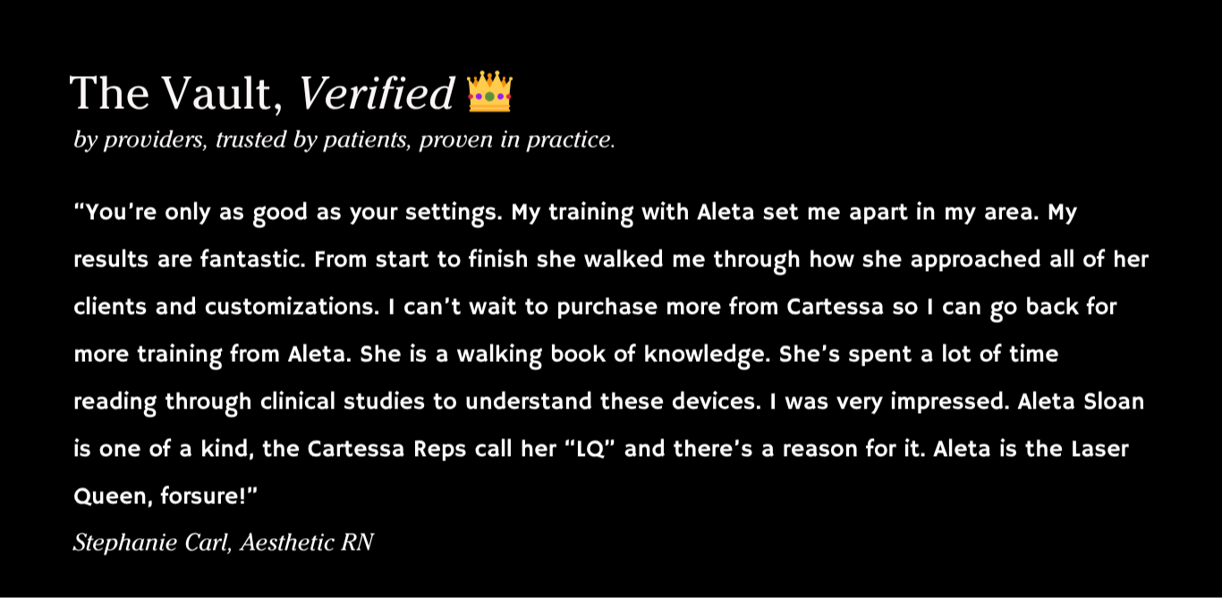 Real-world settings used on real clients. For providers who want predictable, powerful results without second-guessing.